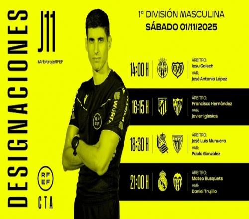 10月31日,西班牙足协官方公布了周六西甲四场比赛的裁判安排,马特奥-布斯克茨将执法皇马vs瓦伦西亚。周六西甲...