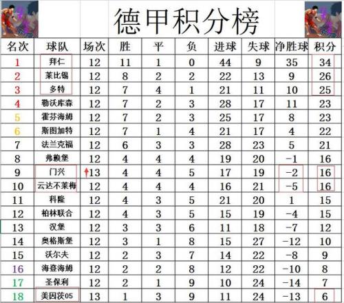 德甲最新积分战报输给拜仁后4胜1平门兴5轮不败冲进上半区